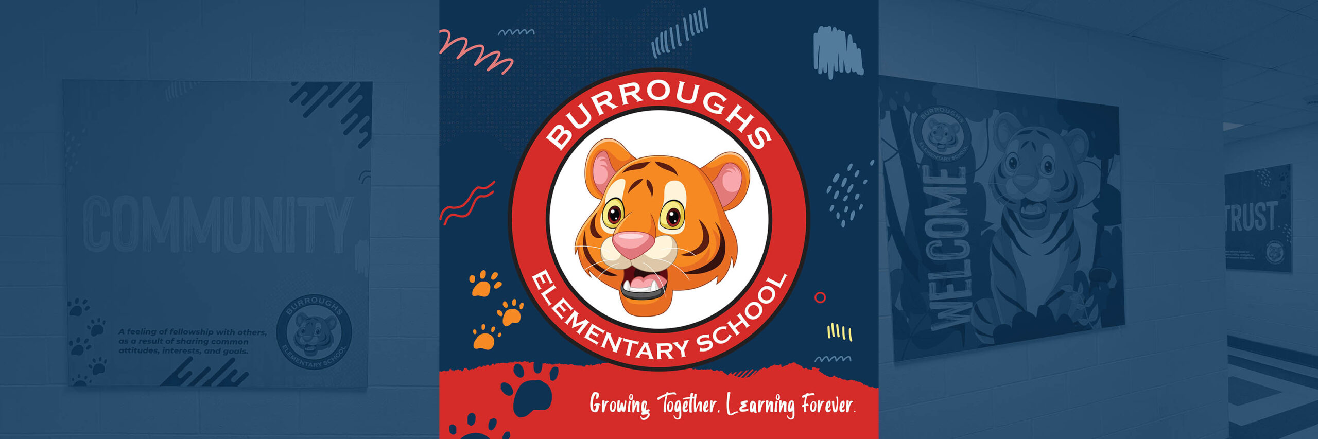 We installed a vibrant collection of SEG fabric graphics throughout Burroughs Elementary School, featuring everything from the school’s tiger