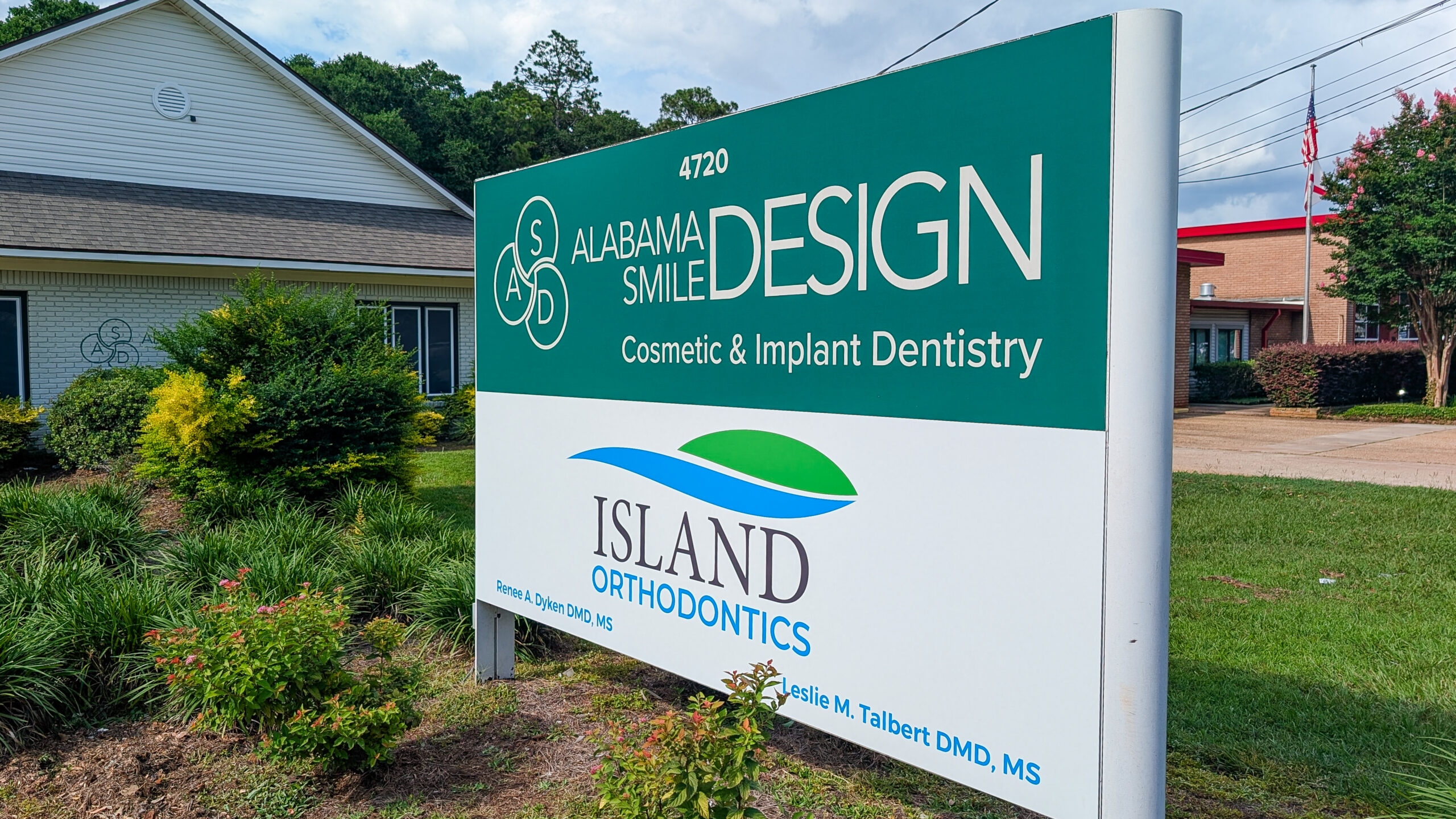 Compel Graphics and Printing recently partnered with Alabama Smile Design and Island Orthodontics to refresh their exterior signage. We replaced the outdated signs with durable ACM (Aluminum Composite Material) for a clean, professional look that will last for years to come.
