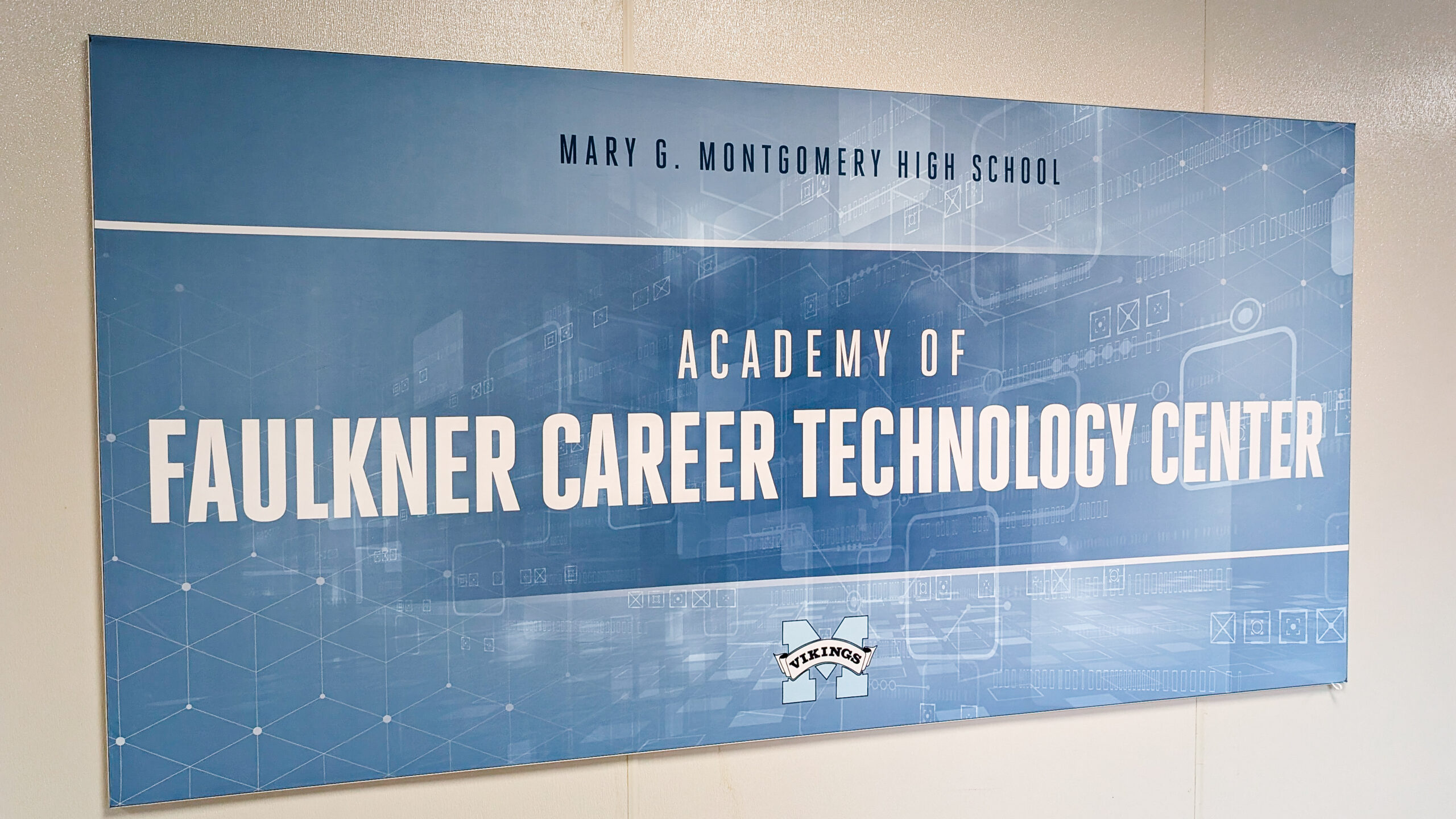 We partnered with Mary G. Montgomery High School in Mobile, Alabama to create a series of custom Silicone Edge Graphics (SEGs) highlighting their academic academies. The fabric graphics are installed in sleek aluminum frames, creating a seamless, high-end look that elevates the space while remaining durable and easy to update.