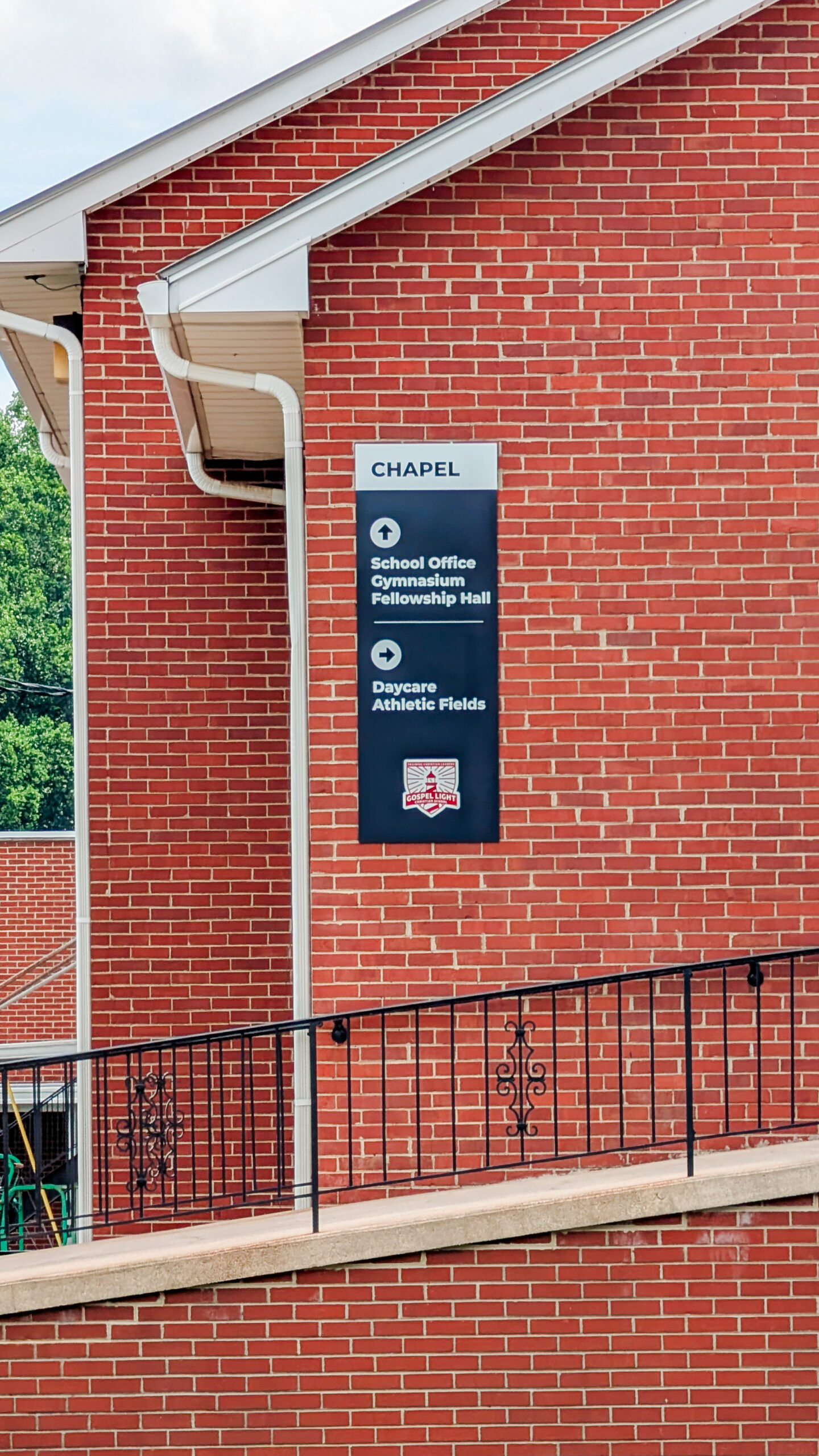 ACM directional signage installed at Gospel Light Christian School in Walkertown, North Carolina.