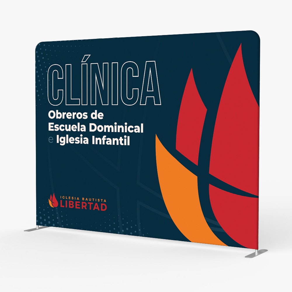 Compel Graphics & Printing designed and produced this custom event backdrop for Iglesia Bautista Libertad for their ministry leadership training conference. This large format tension fabric display was created to provide a professional branded environment for training sessions focused on Sunday School workers and children’s ministry volunteers.